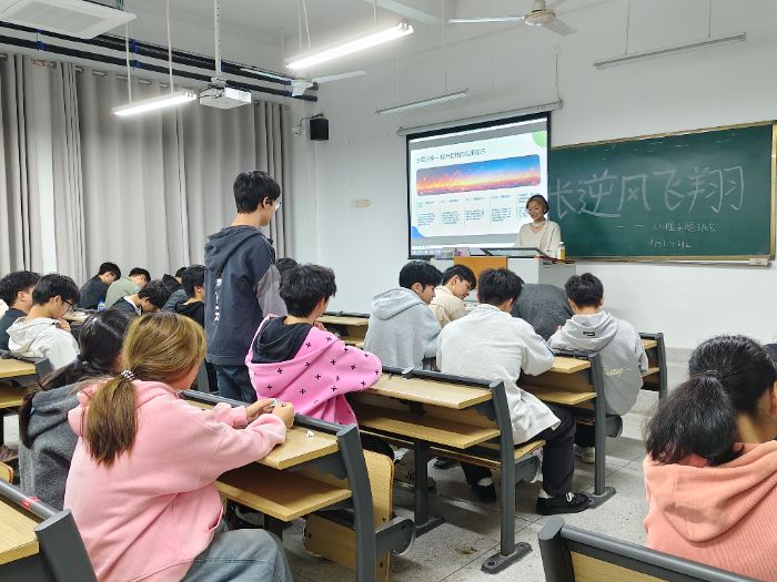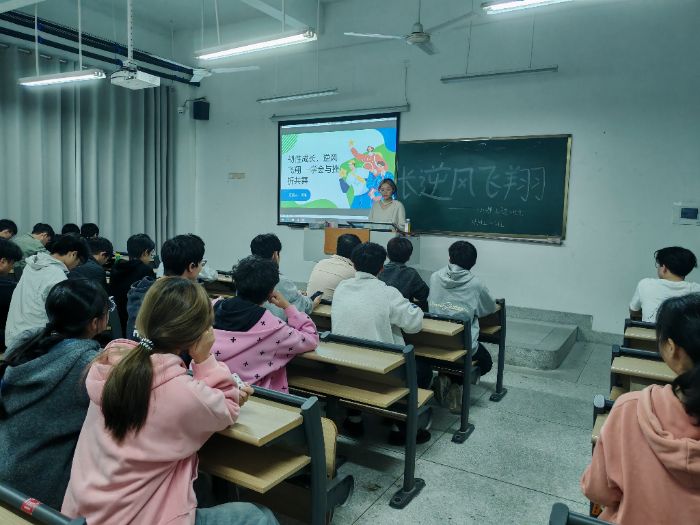 班会伊始,心理委员以“蝴蝶破茧”的励志小故事导入,引发学生对挫折意义的深度思考,随后详细介绍了班会主题、流程及预期目标,迅速调动起现场氛围。在主题分享环节,心理委员通过PPT展示了学业挫折、人际矛盾、生活变故等常见案例,系统讲解了心理韧性的概念、重要性,并分享了积极自我暗示、合理情绪宣泄等实用提升方法,期间穿插互动提问,引导学生主动思考“哪些品质有助于应对挫折”,现场响应热烈。