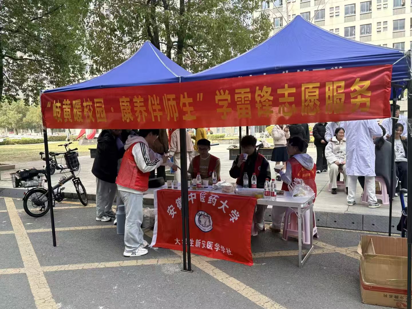 近日,安徽中医药大学太极花园内暖意融融,一场将传统中医药文化与新时代雷锋精神深度融合的特色志愿服务活动圆满举办,让千年岐黄智慧与不朽雷锋精神在校园里交相辉映,润泽每一位师生的心田。