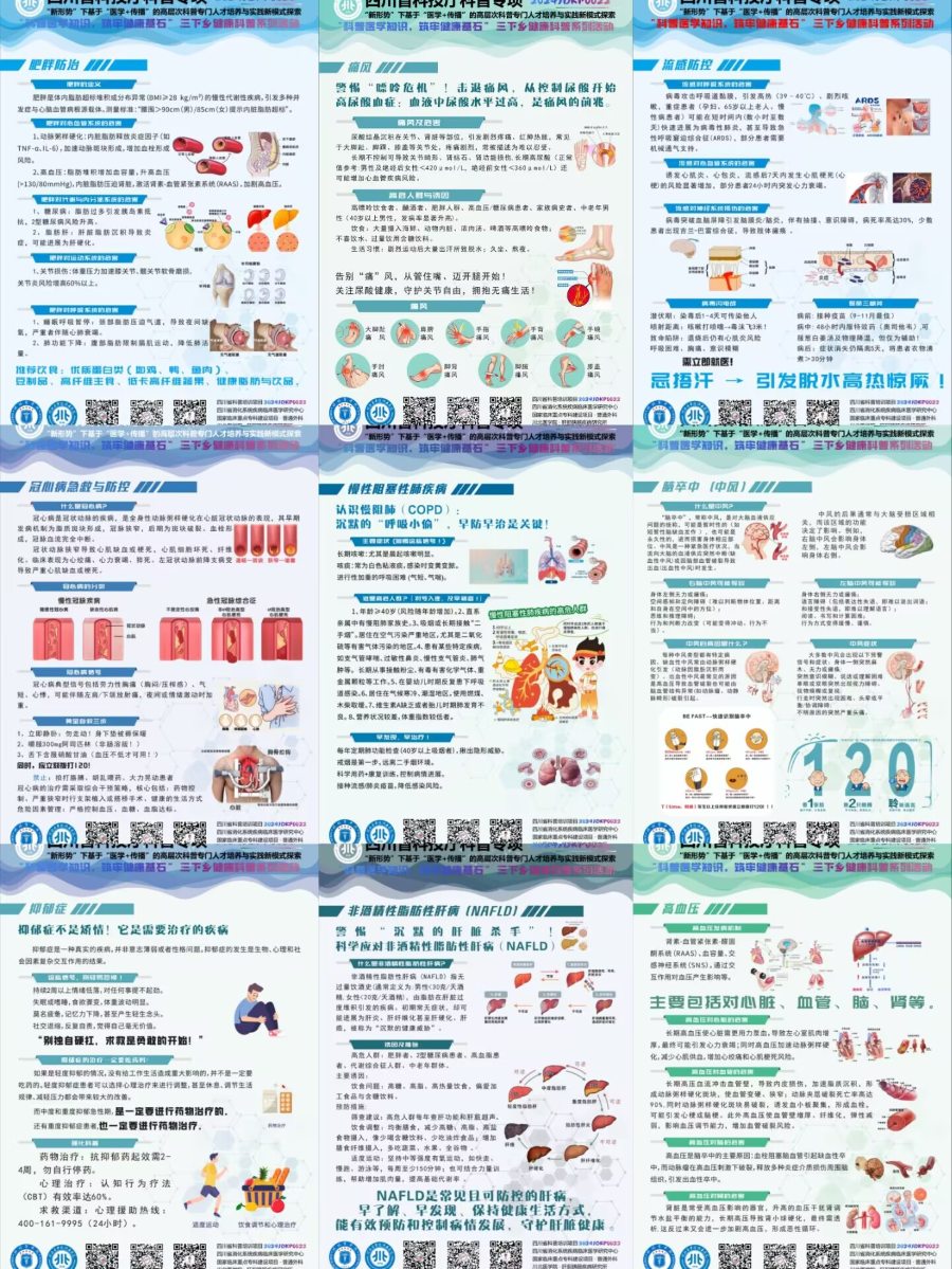 标准化科普物料设计制作发放 合江三下乡团队联合四川省消化系统疾病临床医学研究中心完成9类核心物料的自主设计、定稿、制作和发放,涵盖11种常见疾病科普海报(冠心病,高血压等)、项目专属队旗与横幅、图文版健康科普宣传手册、标准化健康调查问卷及签到表等。所有物料已按队伍申报类型完成分发,针对校外队伍,项目团队统一通过快递形式将所有物料打包发送到对应学校。累计发放纸质物料10000余份。