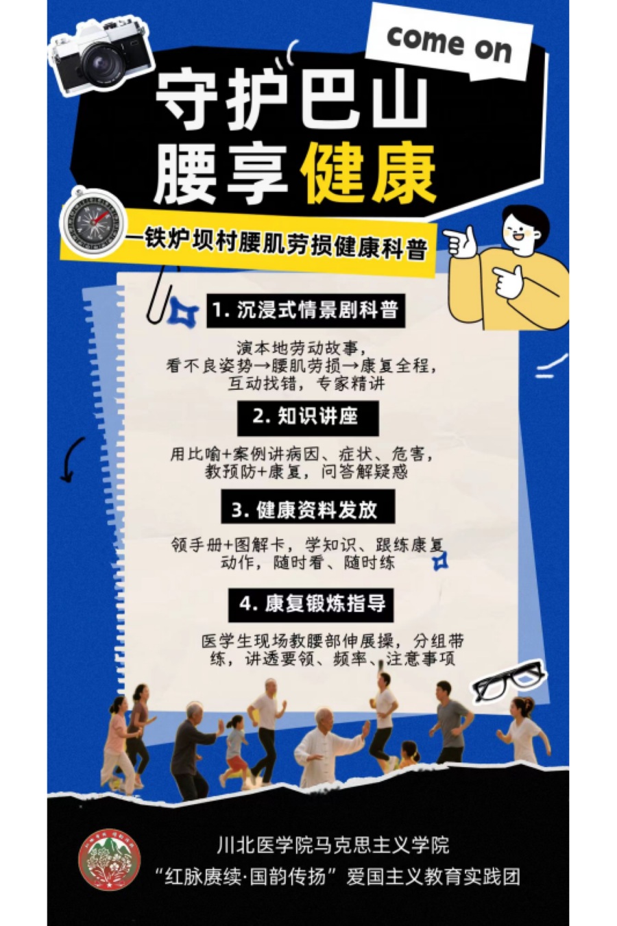 前期工作成果:三大核心任务落地 全域宣传矩阵构建 项目团队通过多渠道立体传播激活参与热度,通过微信公众号“肝胆胰腺外科熊永福博士”、川北医学院校团委推介、团队官方QQ等多渠道发布项目信息,覆盖西南各省三下乡队伍。同步建立专项工作群,实现实时信息互通。截至6月20日晚,吸引55支队伍报名,累计千余人参与。