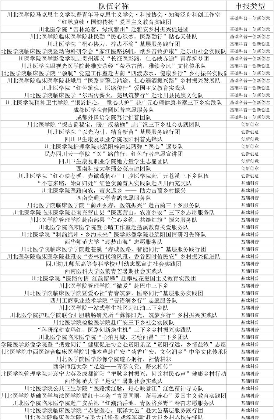 图为所有报名队伍名单