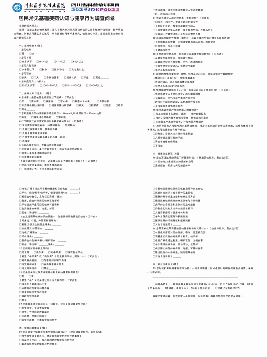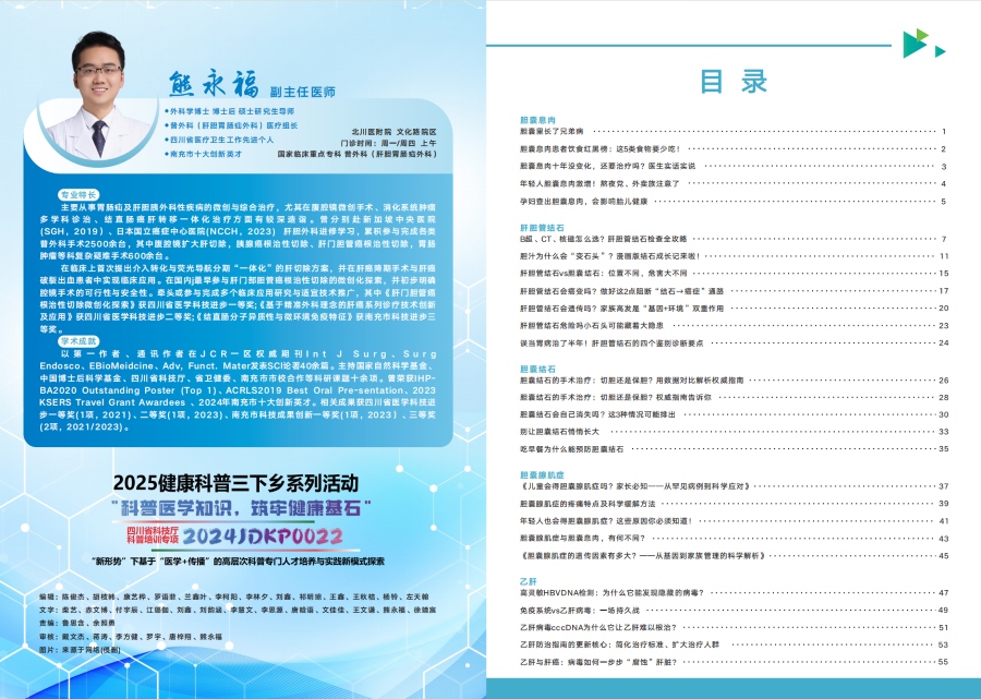 随着三下乡活动临近,川北医学院"百乡百医"健康科普计划已完成全链条前期筹备。在川北医学院临床医学院联合四川省消化系统疾病临床医学研究中心赴泸州市合江县“医路擎丹荔三江系青囊”乡村振兴促进团与临床医学院“汇爱”志愿服务队”协同推进下,项目通过立体宣传矩阵构建、标准化物资体系打造、全流程信息管理三大举措,面向西南各省55支队伍顺利开展省级基层科普活动(项目编号:2024JDKP0022)。川北医学院附属医院肝胆外科专家熊永福博士全程指导,确保筹备工作兼具医学专业性与基层适配性。