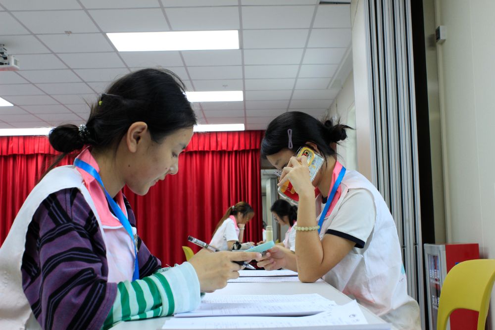 (图为筑爱支队队员在对高龄长者进行电话慰问/钟栩祈摄)