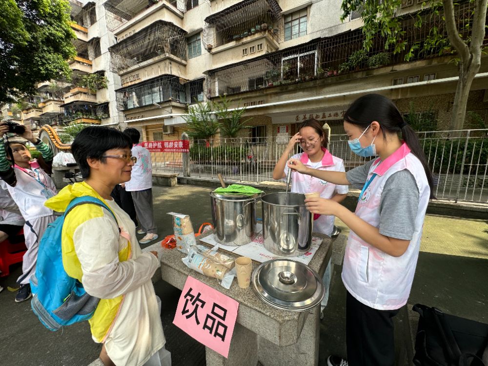 活动现场,融合中医药智慧的特色服务区人气高涨。队员们现场制作并免费赠送助眠安神、祛湿健体、驱蚊防虫三类功效香囊。同时向居民讲解香囊中各种中药材的功效和作用。此外,筑爱支队贴心地为居民准备了山楂决明子茶、玉米须茶等凉茶,在炎炎夏日送去一份沁人心脾的关怀。
