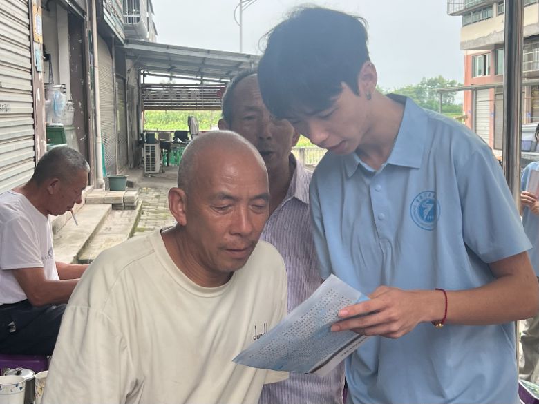 在防诈骗宣传中,同学们充分发挥亲和力优势,使用当地方言与村民亲切交流,尤其关注老年群体。面对视力不佳的老人,他们耐心逐字朗读;针对理解较慢的村民,他们反复举例,用通俗语言剖析“保健品骗局”、“冒充亲友借钱”等常见诈骗手法。团队还现场指导老人设置手机骚扰电话拦截功能,并反复叮嘱遇到可疑情况及时联系子女或报警。