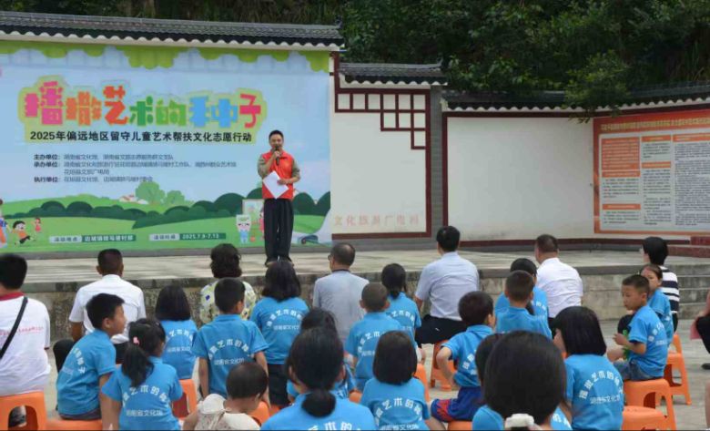 本网讯(通讯员何娜 曹高祥 陈玲)7月9日,吉首大学旅游与城乡规划学院“心系旅农”社会实践团队联合花垣县文化馆、边城镇骑马坡村委会,在当地成功举办了“播撒艺术的种子”——2025年偏远地区留守儿童艺术帮扶文化志愿行动开班仪式。