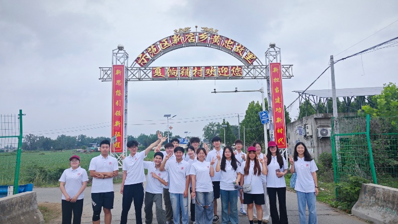 图为实践队员在实践地夏饷铺村前合影留念