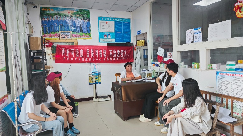 图为实践队员走进村镇卫生室进行调研访谈