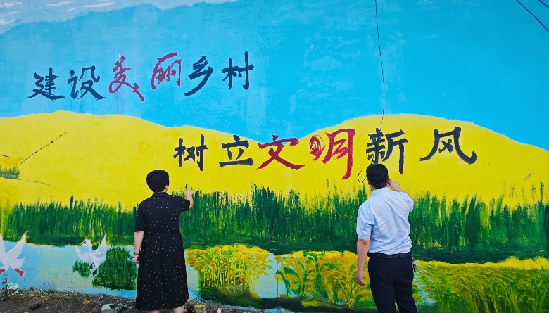 为了积极响应教育部专项活动和市团委“青耘乡村”社会实践活动号召,在夏饷铺村的素色墙垣上,大学生团队以“建设美丽乡村 树立文明新风”为灵魂主题,挥洒出乡土焕新的艺术篇章。墙绘组深入村巷倾听民意,将村民对家园的憧憬转化为两大视觉叙事:“美丽乡村画卷” 以金黄的麦浪、青蓝的天空、池塘的白鹅勾勒生态宜居图景;创作中,村民与孩童协助文明标语填色,使墙体成为代际情感与美育浸润的载体。这道融合乡土肌理与时代精神的风景线,以色彩重塑家园认同,以视觉语言助推乡风文明,真正实现“美在环境,育在人心”。与此同时,在夏饷铺村的树荫院落与田间巷陌,实践学员手持记录本深入走访村民,通过方言与普通话交织的亲切访谈,倾听他们对乡村变迁、教育现状及语言习惯的真实心声。这些鲜活的一手素材,不仅为墙绘创作注入民生意蕴,更让文明倡导精准契合乡土脉搏,使青春实践真正扎根大地。