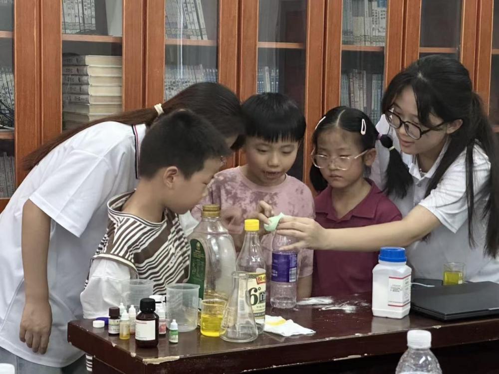 为丰富乡村少年儿童暑期生活,提供学业辅导与心灵陪伴,2025年7月5日,巢湖学院“化韵传槐星火实践团”来到安徽省合肥市巢湖市槐林镇,开展了为期7天的环巢湖“一院一镇一品”社会服务行专项活动。在活动过程中,实践团队为孩子们精心准备了心理健康讲座、化学知识讲座以及趣味化学科普实验等特色内容。实践团队队员通过生动的讲解和直观的演示,向孩子们传递相关知识,并且在讲座与实验过程中与孩子们进行积极互动。通过耐心的引导与热情的鼓励,孩子们认真聆听、踊跃参与实验操作,对科学现象展现出浓厚兴趣,活动场所里充满了孩子们的惊叹声、讨论声与成功的欢笑声。(通讯员 屠金雨)
