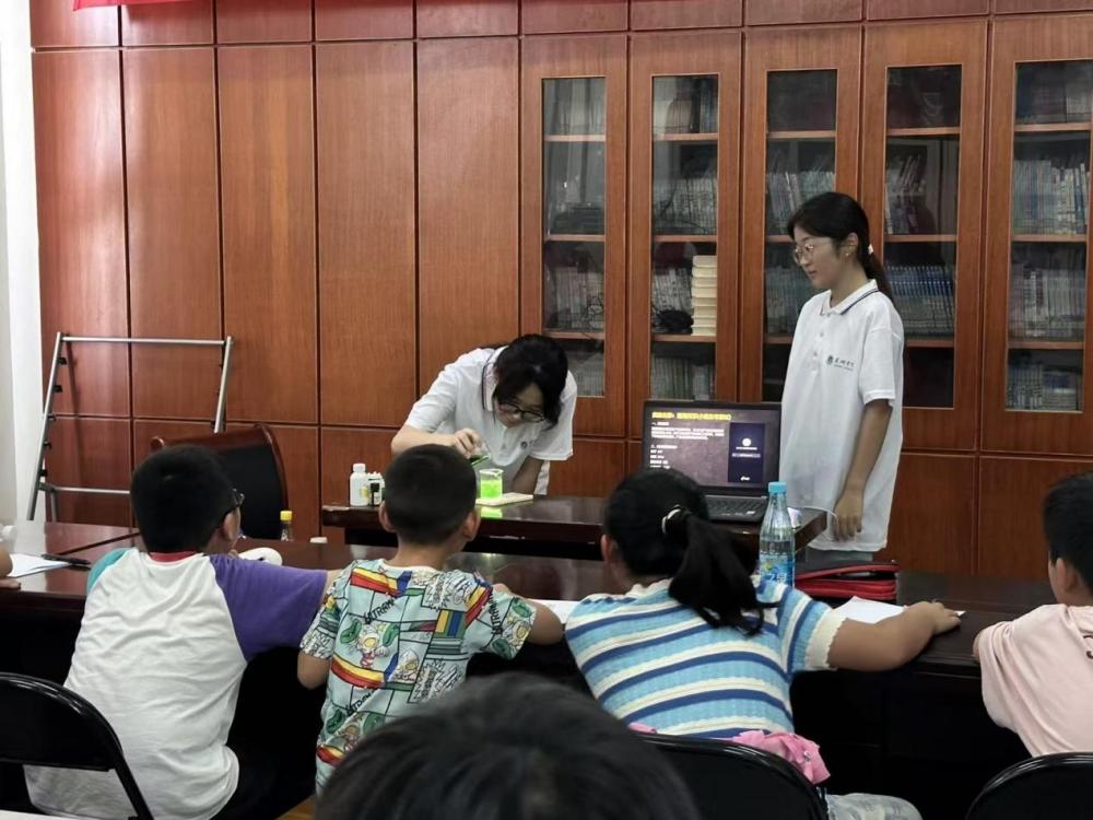 图为队员向小朋友普及化学知识。 屠金雨 摄