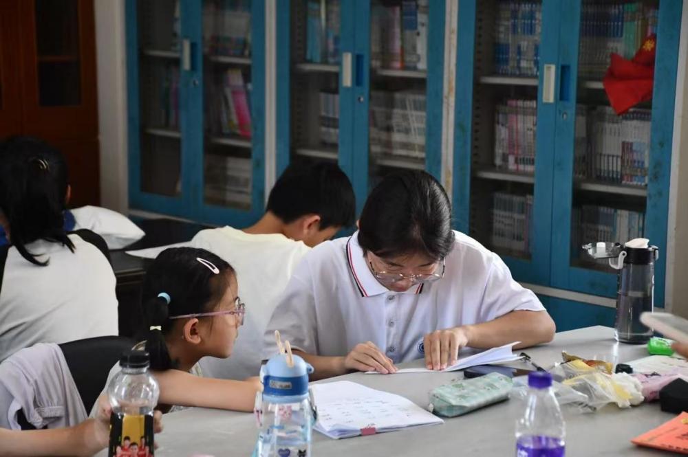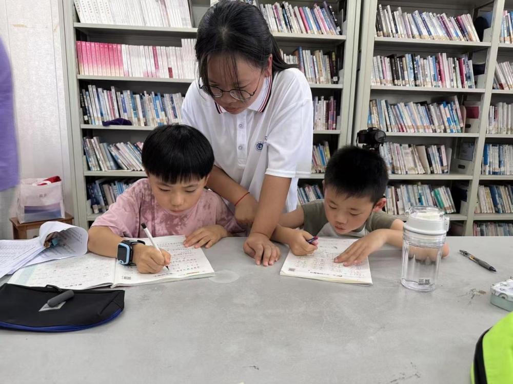 图为队员在教小图为队员辅导小朋友作业。 屠金雨 摄