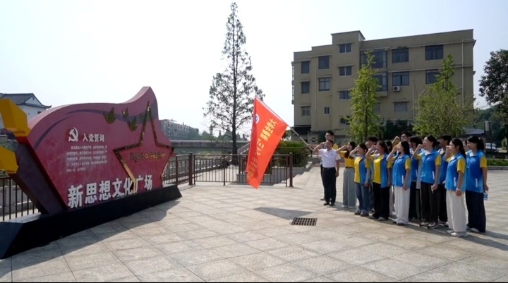 在新思想文化广场,实践团全体成员高举右拳,怀着崇敬之心庄严宣誓:矢志传承红色基因,以青春担当投身乡村振兴事业。