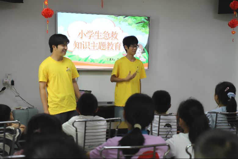 图为实践队员为孩子们授急救技能课。郑智伟摄