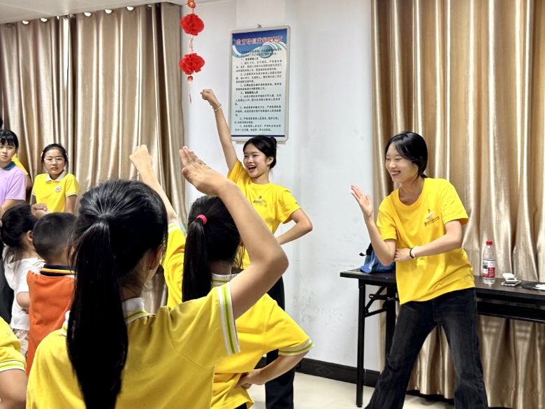 图为实践队员为孩子们授舞蹈课。林垲煜摄