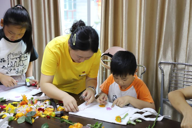 图为实践队员辅助孩子拓染。郑智伟摄