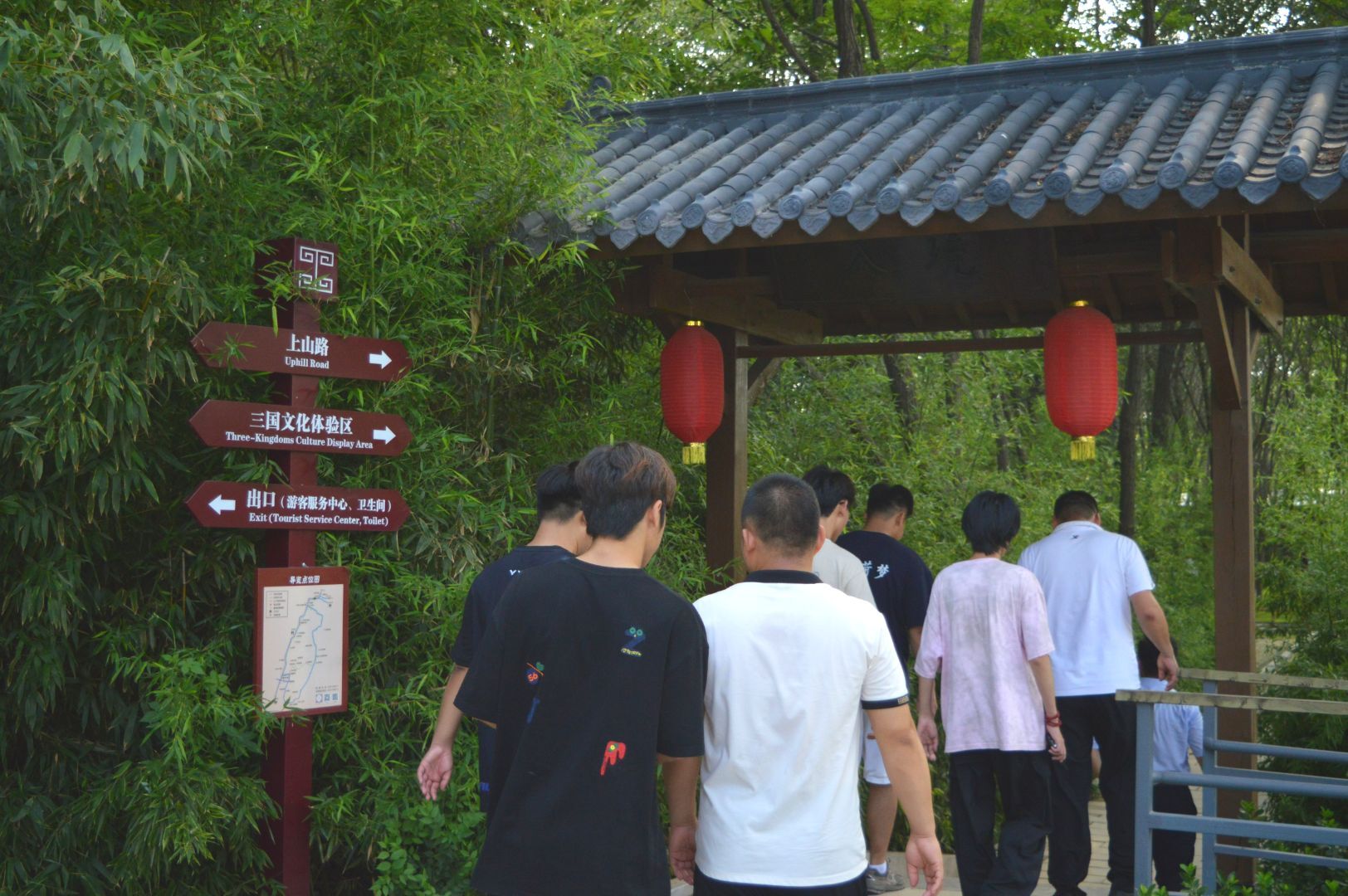 队员们在碑廊前驻足,有的凝视着碑上的诗句,有的用手机拍下这些珍贵的题刻。在墓冢前的平台上,大家望着这座历经千年的墓冢,仿佛能感受到千年前曹植在此创作时的心境。一位队员神情专注,眼中满是对历史的敬畏与对文人的敬佩。
