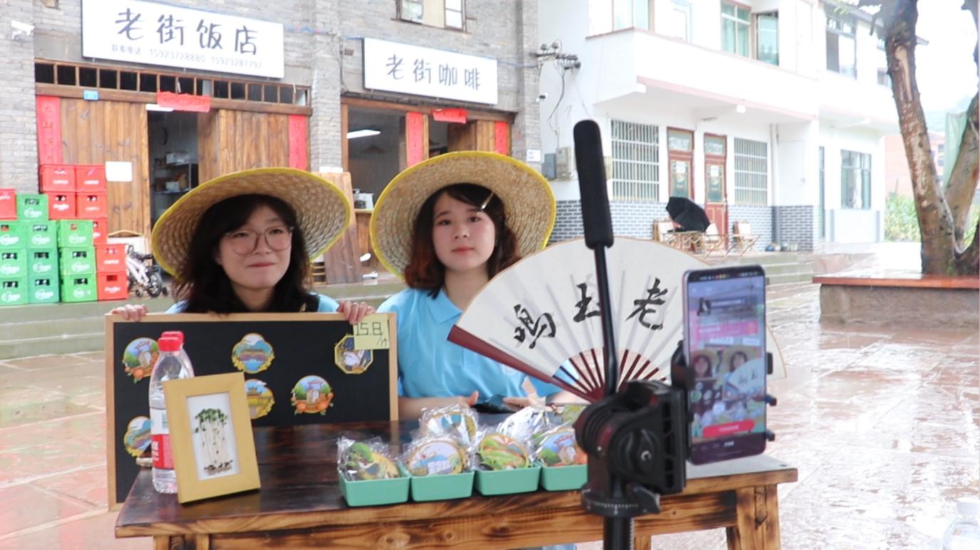 除了特色农产品,志愿者们还注意到当地丰富的文化资源。他们通过实物展示和场景化讲解进行直播,生动呈现以鸣玉镇古桥、五彩花田等为灵感设计的文创产品及其文化内涵,展现乡村文化的独特魅力。这一实践不仅是对乡土文化的创新传播,更是响应国家繁荣发展乡村数字文化的政策要求,助力乡村文化借助数字技术走向更广阔的舞台。