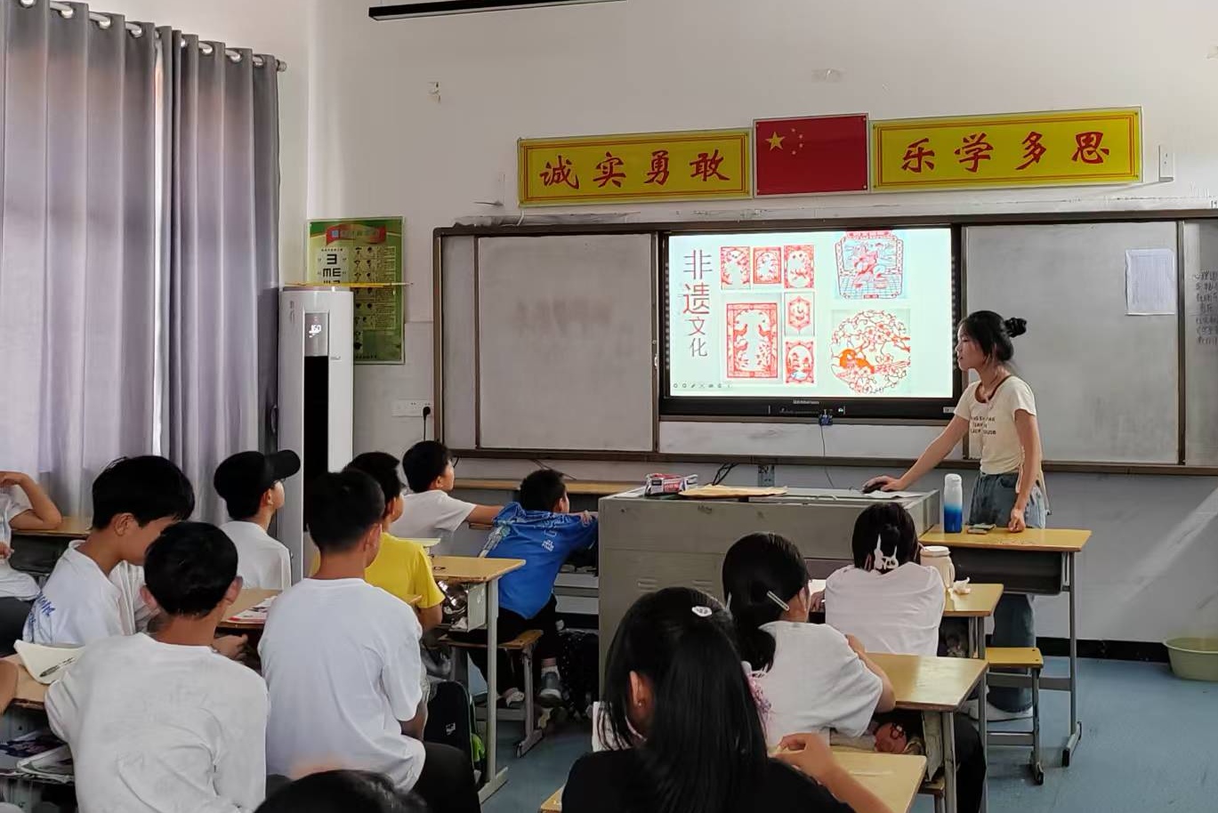 7月9日,长江大学"抗大·树梁"团队在小悟乡林业中学开启第五天实践课程。这座曾见证抗大分校烽火岁月的乡镇,今日因志愿者们的创新教学再度焕发文化生机。团队延续"红色铸魂+学科赋能"模式,通过沉浸式语文课与红色思辨课,构建起跨越时空的精神对话。