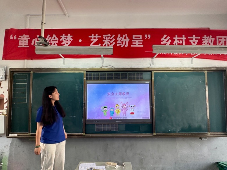 暑假期间,安全教育必不可少。支教团特别策划并开展了系列安全教育课堂,聚焦乡村儿童假期常见风险点,涵盖防溺水、防火、安全用电、人身安全防护以及交通安全等关键领域。通过情景模拟、知识竞答等互动形式,引导孩子们识别危险、掌握基本的自救与应急避险技能。例如,在防溺水课程中,模拟落水场景,示范科学救援方法,教导孩子们如何正确呼救、利用身边物品(如空水瓶、长树枝)进行自救或互救,强调“见义智为”而非盲目施救。这些活动有效提升了孩子们的安全防护意识。