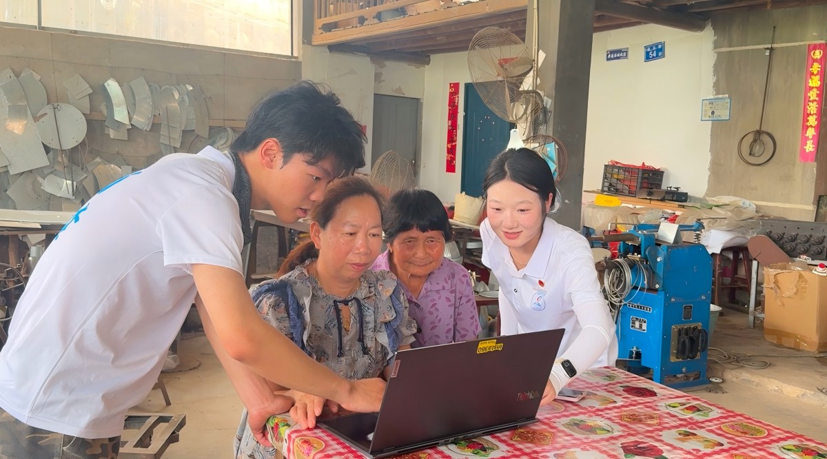 图为实践队在福州市闽侯县溪源村进行入户直播教学)