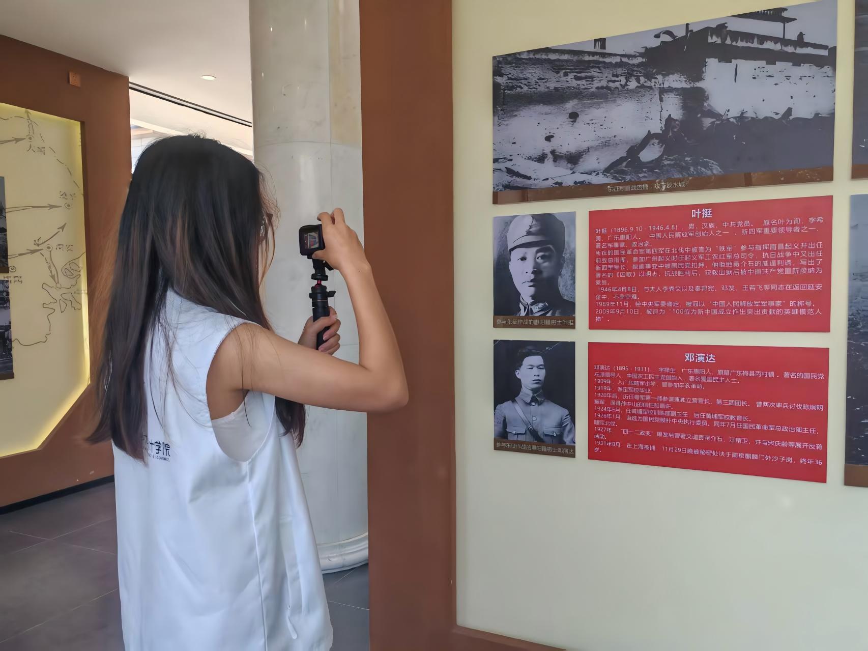 当日下午,团队前往惠紫河博地委旧址。在这里,东江纵队的革命故事通过文物展陈与场景复原徐徐展开,队员们用镜头定格那段烽火岁月。革命先辈们的坚定信仰与奋斗身影,让大家深刻感受到红色精神的磅礴力量。