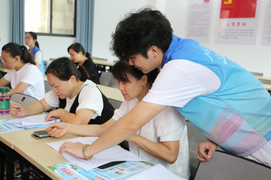 图为团队成员引导居民填写调查问卷