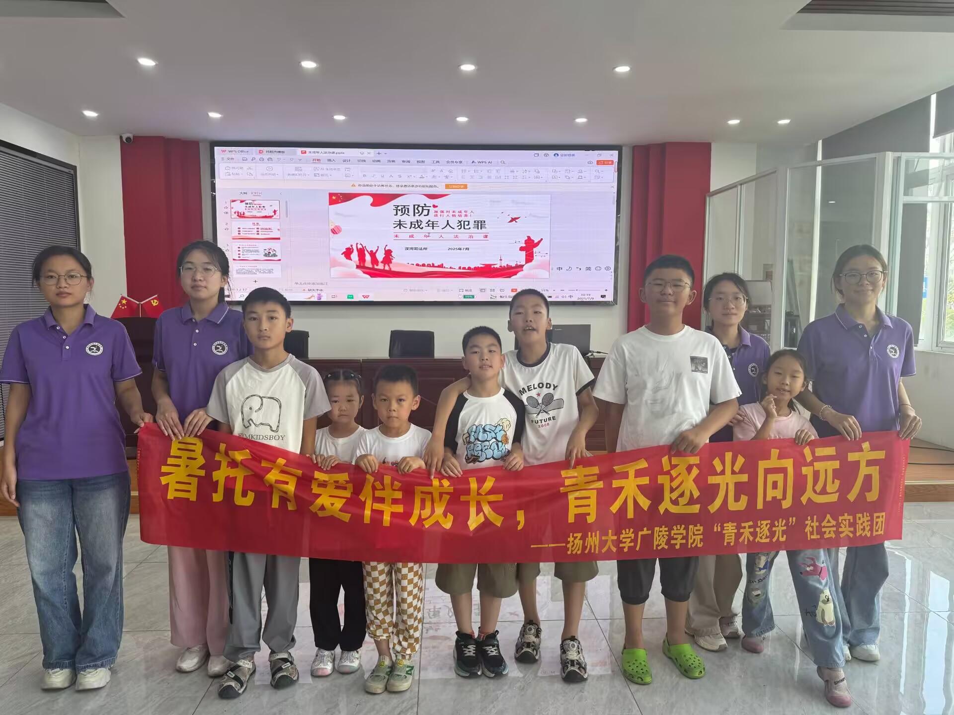 为了贯彻法治精神,提升小朋友们的法治素养和艺术创作能力,7月9日,扬州大学广陵学院“青禾逐光”实践团队携手扬州市邗江区汊河街道高桥社区开展了一系列生动而富有成效的社会实践活动,旨在丰富青少年的假期生活方式,引导青少年健康茁壮成长。