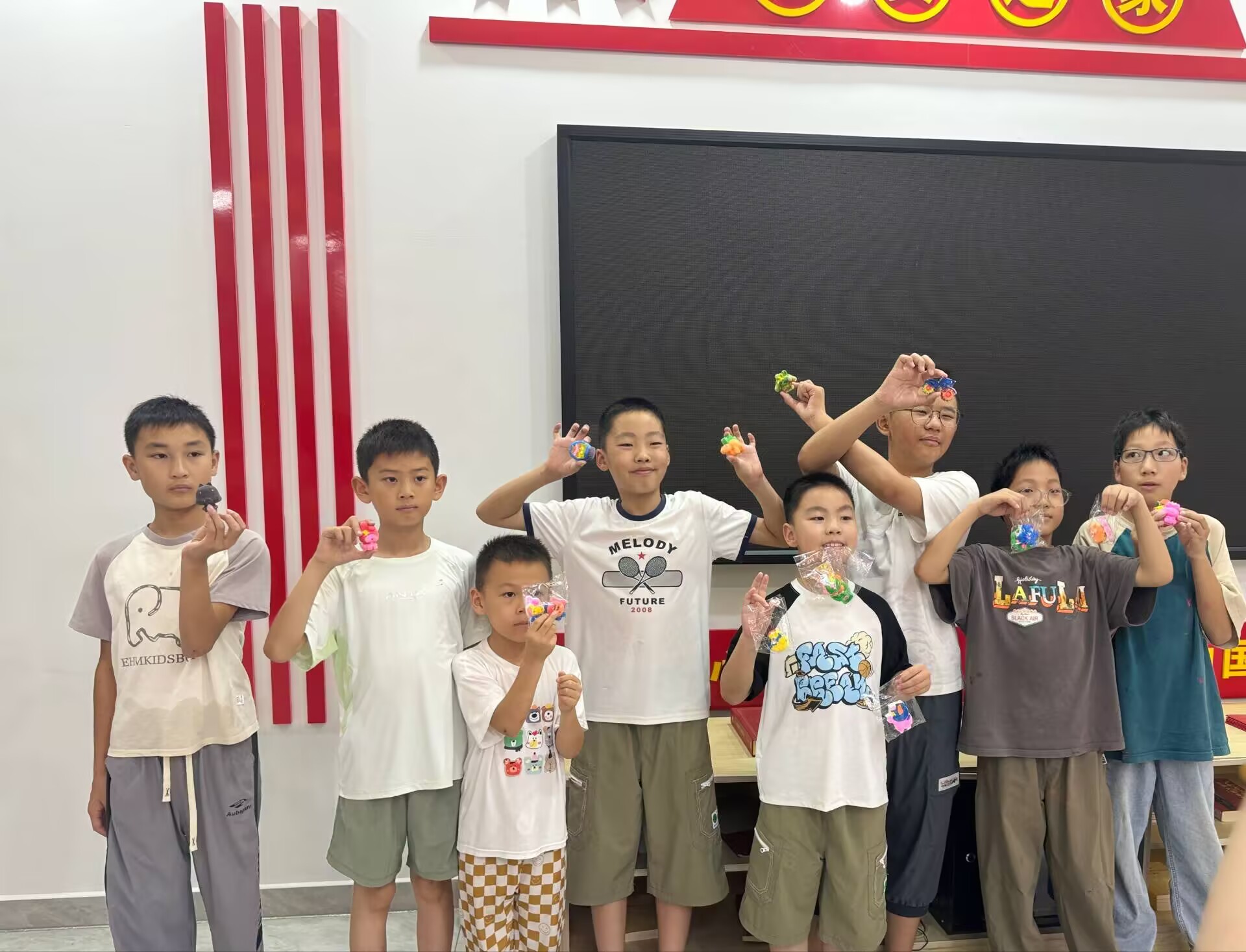 (图为7月9日,“青禾逐光”实践团队丁梦晗带领孩子们涂绘的石膏娃娃展示。丁梦晗供图)