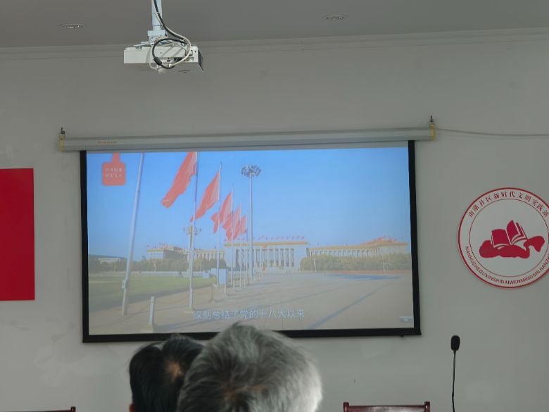 图为社区党员观看会议内容相关视频,纪祥通讯员摄