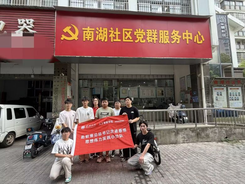图为实践团在南湖社区党群服务中心前合影留念,江勇晟通讯员摄