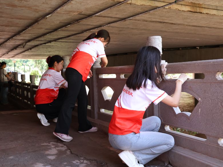 ▲图为实践队员正在开展清洁工作。阳乐乐 供图