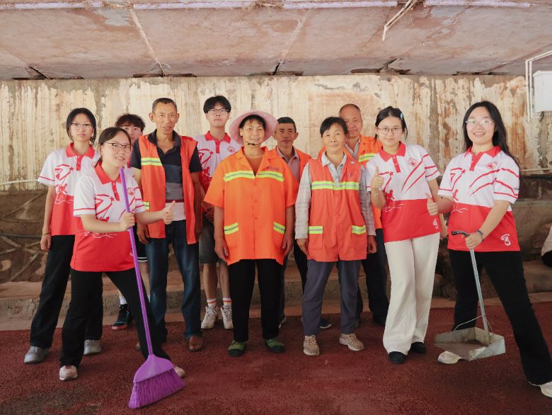 在河道清理环节,实践队与当地环卫力量形成高效协同。针对古蔺河沿岸零星垃圾污染这一治理难点,实践队前期调研梳理污染源头,环卫工人凭借经验解决清理难点,双方全员参与、分工协作,共同完成河道垃圾集中清扫。红色志愿马甲与橙色环卫服相映,青年学子的热情与基层劳动者的坚守碰撞出协作火花。这种联动模式,既提升了河道治理实效,更探索出乡村环境整治的多元协作路径,为乡村振兴筑牢生态基石。