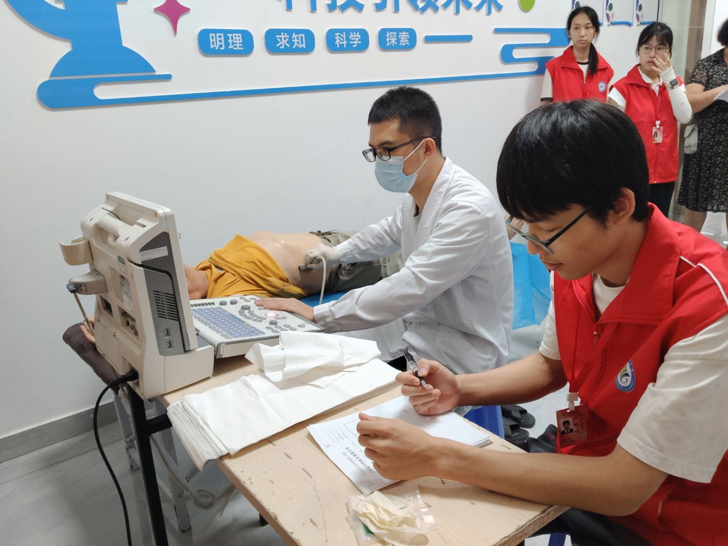 (图为影像科医生为居民们做检查 荔枝红志愿服务队 李天恩摄)