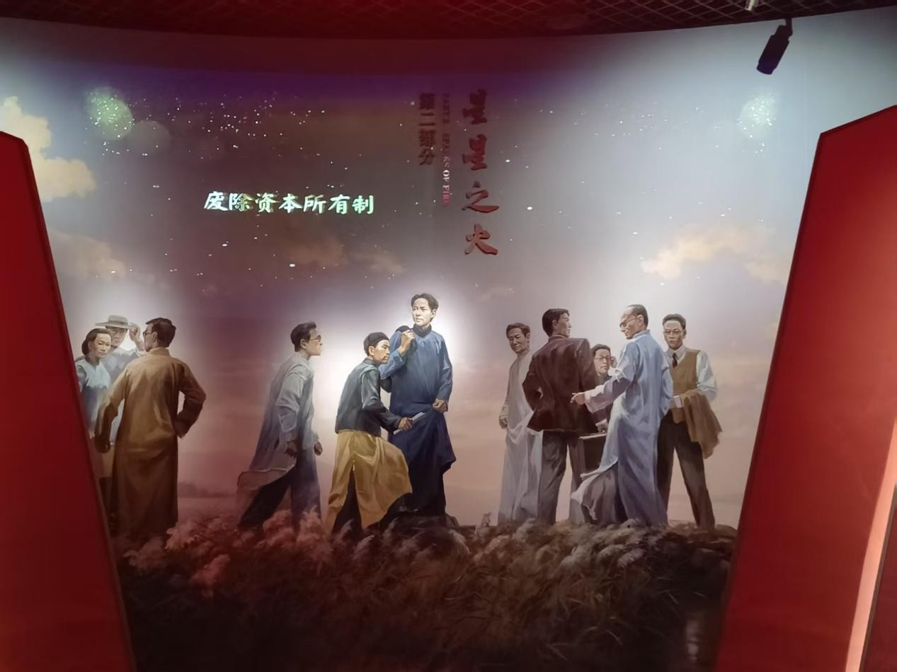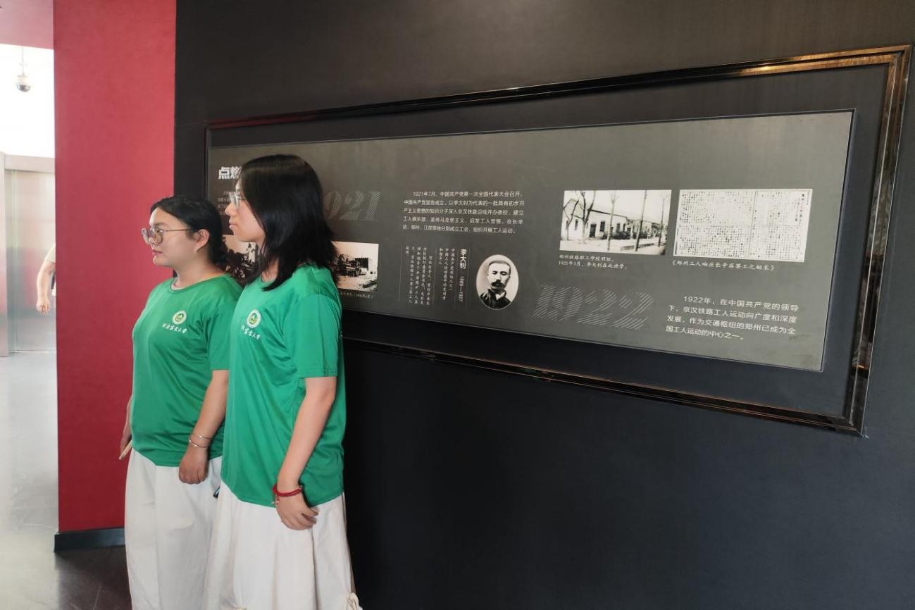 随后,实践团队来到二七纪念堂。这里是当年京汉铁路总工会成立大会的旧址,承载着厚重的历史记忆。走进纪念堂,仿佛穿越时空,回到了那个波澜壮阔的革命年代。在讲解员的带领下,队员们参观了“铁路建设”“星星之火”“革命烈焰”“永恒丰碑”等主题展厅,展览通过大量的历史文物、图片、场景复原等,全面展示了京汉铁路工人大罢工的历史背景、经过和深远影响,全面了解了二七大罢工前后中国工人阶级的奋斗历程。一幅幅珍贵的照片、一件件真实的文物,无不诉说着革命先烈们为了民族独立和人民解放而付出的巨大牺牲。队员们不时驻足观看,仔细聆听讲解,并不时提问交流,对二七精神的内涵有了更加深入的领悟。