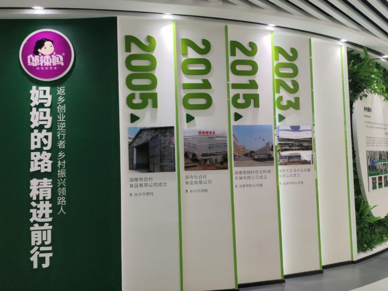 实践团于企业文化展厅见证了邬辣妈的发展轨迹:2005年,“湖南省怡合村食品有限公司”于长沙设立;2015年,其完成转型升级,更名为“邬辣妈农业科技发展有限公司”;2023年,总部正式落地桥头河镇。曾当选全国妇代会代表、娄底十大新闻人物的集团创始人邬文明表示:“企业起步虽难,但团队同心、以爱立业即可发展壮大。”