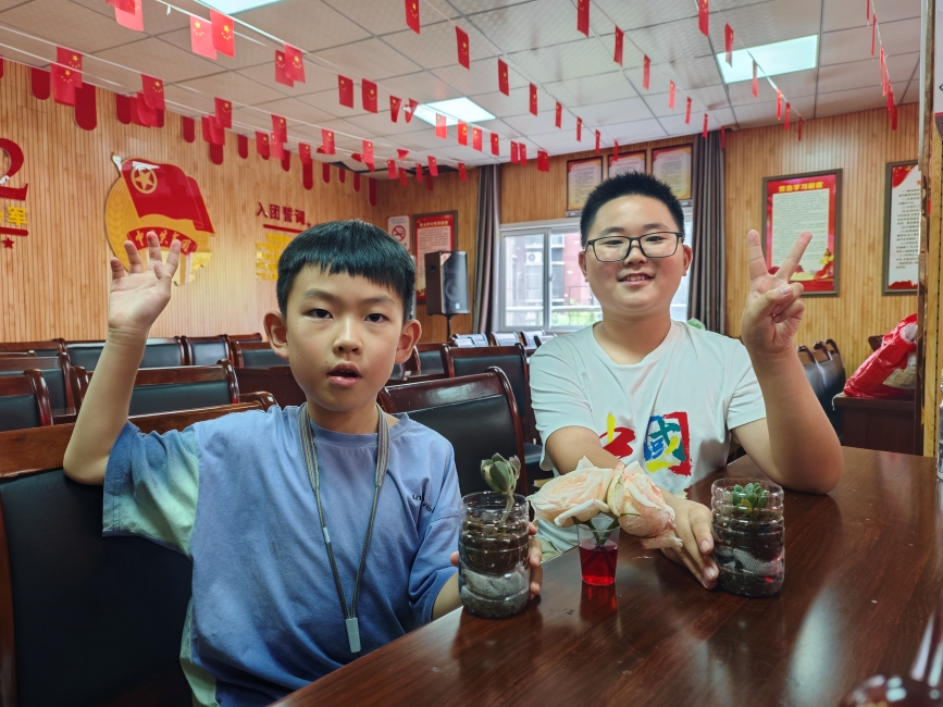 本次三下乡实践活动的开展,不仅为宿州市三八街道港利社区的留守儿童与流动儿童送去了科学启蒙与贴心陪伴,更以花朵染色、生态瓶制作为载体,创新加入“实验成果分享会”,让孩子们举着染色彩花、捧着自制生态瓶讲述发现,在互动中深化认知。志愿者们通过调研精准对接需求,指导时还引导孩子联想生活——比如用染色原理解释蔬菜吸水,让科学扎根日常。这段充满活力与意义的旅程,既展现高校学子服务热忱,也让孩子们在分享与联想中触摸科学温度,更让这些与科学相伴的瞬间,化作童年里沉甸甸的收获,在未来的日子里慢慢发酵,成为他们眺望世界时眼里不灭的光。