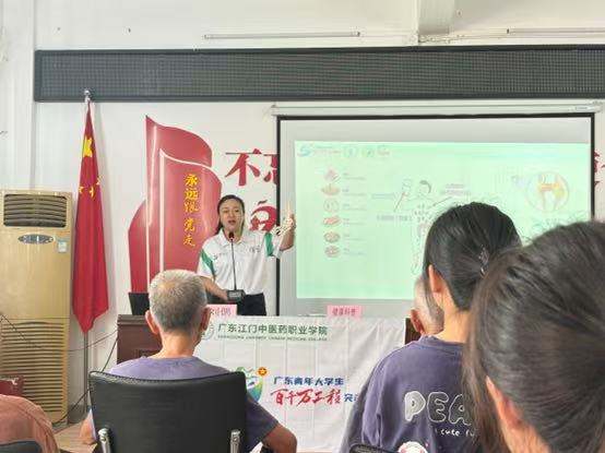 饮食是影响尿酸水平的关键因素。广东江门中医药职业学院的刘偲老师则聚焦村民常见健康困扰,开展“三高”、痛风专题科普讲座。讲座中,刘偲老师用通俗易懂的语言,从日常饮食结构失衡、运动量不足等诱因切入,结合真实临床案例,详细剖析“三高”与痛风的发病机制、典型症状及潜在危害。不仅给出科学的饮食搭配方案,还强调定期体检、规律作息的重要性,帮助村民们树立“早预防、早发现、早治疗”的健康理念。这次讲座旨在提升村民的健康素养,增强疾病自我管理能力,助力乡村健康振兴。