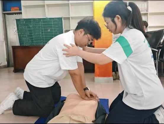 急救培训环节,刘偲老师详细讲解急救理论知识,通过图文并茂的课件与生动的视频案例,系统讲解急救黄金时间、急救原则等理论知识。随后,突击队成员组成演示小队,以标准规范的操作流程,分步演示心肺复苏与海姆立克急救法。