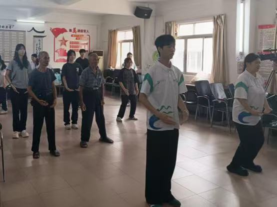 在活动现场,“医旅助青藤”突击队深入当地,为老年村民现场教授八段锦。作为一项源远流长的中国传统养生功法,八段锦以其舒展优美的动作、锦缎般的流畅韵律著称,兼具强身健体、调和身心等多重保健功效。教学过程中,队员们细致拆解每一式动作要领,确保老人们准确掌握。现场预留充足练习时间,队员们全程陪伴,及时进行个性化指导和动作纠正。通过这种理论与实践相结合的方式,帮助老人们快速入门,将八段锦融入日常,实现养生保健,提升晚年生活品质。
