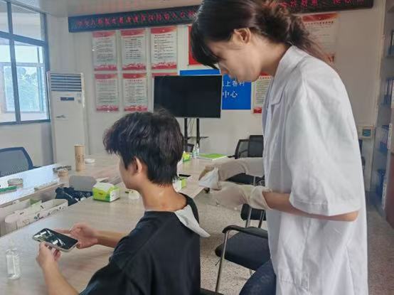 同时,突击队也进行了中医坐诊,为村民倾情提供免费刮痧、艾灸服务。这两项承载干年智慧的中医外治疗法,以疏通经络、调和气血、散寒除湿之效守护乡民安康。青年学子们悉心体察村民状况与需求,施以精准的刮痧或艾灸治疗。他们用古老技艺传递关怀,以实际行动诠释医者仁心,将青春奉献融入乡村振兴的壮阔征程,为筑牢基层健康防线贡献灼灼青春之光。