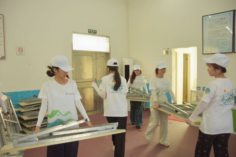 为了让孩子们有一个干净、舒适的学习环境,全体队员立即投入场地布置工作,一起搬运教学物资、桌椅,对教室进行了全面清洁与布置,打造一个良好的教学环境。