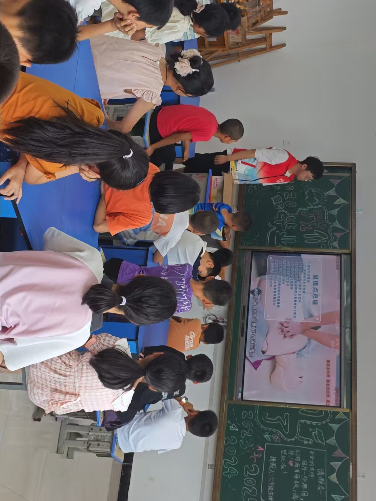 图为志愿者给孩子们观看心肺复苏视频。蒙明哲 供图