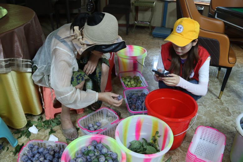 联盟村粮星农场展示了产业融合的创新尝试。该农场通过300亩特色水果种植基地,构建“种植+采摘+加工”三位一体模式。农场采用会员制定量采收,并利用“快递进村”政策实现省内生鲜速达。团队成员实地观察农产品加工环节,了解将非常规品相李子转化为泡酒、果酿等产品的增值过程。农场负责人介绍,当前正筹备特色民宿项目,计划结合农产品资源开发沉浸式体验活动,拓展大学生实践、家庭休闲等客源市场。