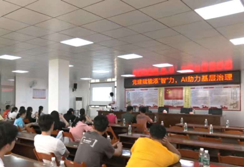 突击队还到长岐镇举办“党建赋能添智力,AI助力基层治理”公益课活动。广东工业大学经济学院党委副书记陈朝阳,长岐镇党委书记陈思、团吴川市委书记陈志健、副书记林一旗、长岐镇副镇长杨林燕以及40余名基层干部参加活动。动员会上,长岐镇党委书记陈思同志以“把握AI赋能新机遇,争当基层智治排头兵”为主题定基调、明路径,激发青年突击队与镇村干部的担当作为。陈思同志的讲话深刻鼓舞了在场的百千万工程突击队成员及基层干部,为公益课的开展定下了一个好的基调。