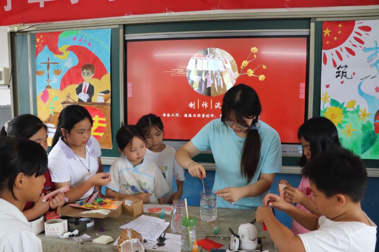 在七甲乡政府、湖南工程学院团委及七甲乡中心学校的大力支持下,实践团成员迅速与孩子们熟悉起来。活动吸引了众多留守儿童积极参与,根据年龄阶段划分为小学和初中两个班级。团队精心设计了涵盖安全(防溺水、防诈骗)、环保(垃圾分类)、心理健康(情绪管理)、德育(爱党爱国、感恩、红色教育)、传统文化、养成教育以及艺术实践(音乐、书法、舞蹈、手工)等多个主题的丰富课程,旨在激发孩子们的学习兴趣,拓展视野。课堂上,实践团成员耐心讲解并穿插多个互动游戏环节,让孩子们从最初的羞涩逐渐变为主动提问、踊跃发言,校园里充满了求知的热情与欢乐的笑声。