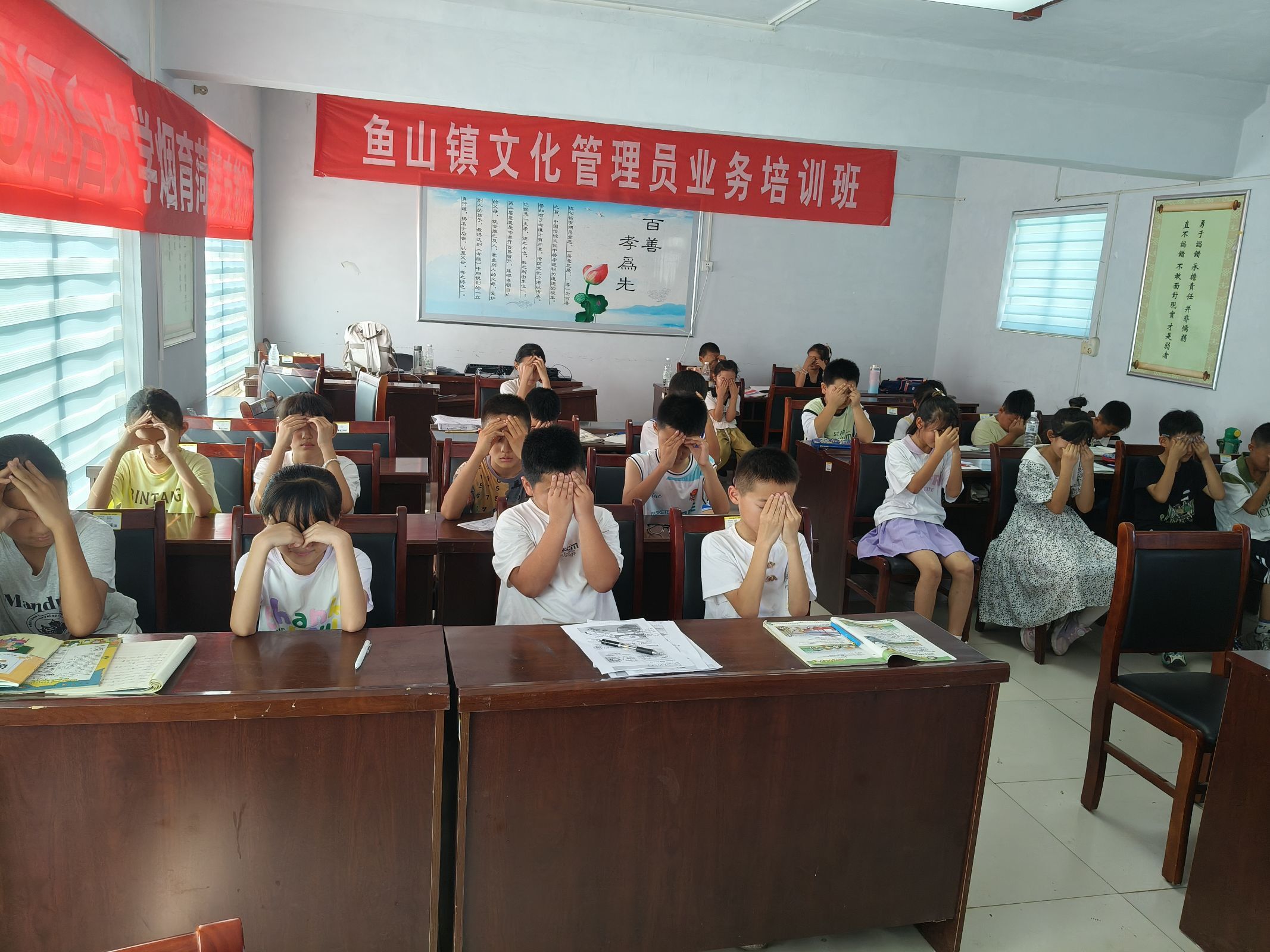 “眼保健操现在开始,第一节,按揉攒竹穴……” 广播里传来清脆的口令,教室里瞬间安静下来。孩子们端正地坐好,闭上眼睛,小手指找准穴位轻轻按揉。支教老师来回走动着,弯腰帮这个摆正手肘,替那个纠正手指位置,看到有孩子偷偷睁眼,就用手指在自己眼皮上比划 “闭眼” 的动作,惹得孩子赶紧抿住嘴,认真地继续按摩。