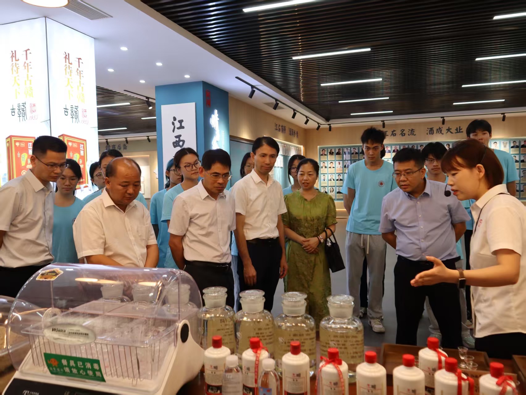 7 ⽉ 9 ⽇,江西师范⼤学“赣⻛⻘⾏”暑期社会实践队赴江西赣酒集团参观学习。队员们深⼊探访酒⼚⻋间与窖藏基地,亲⾝体验赣酒“汲天地灵⽓,酿千年古法”的匠⼼传承,开启了⼀场沉浸式的赣酒⽂化之旅。