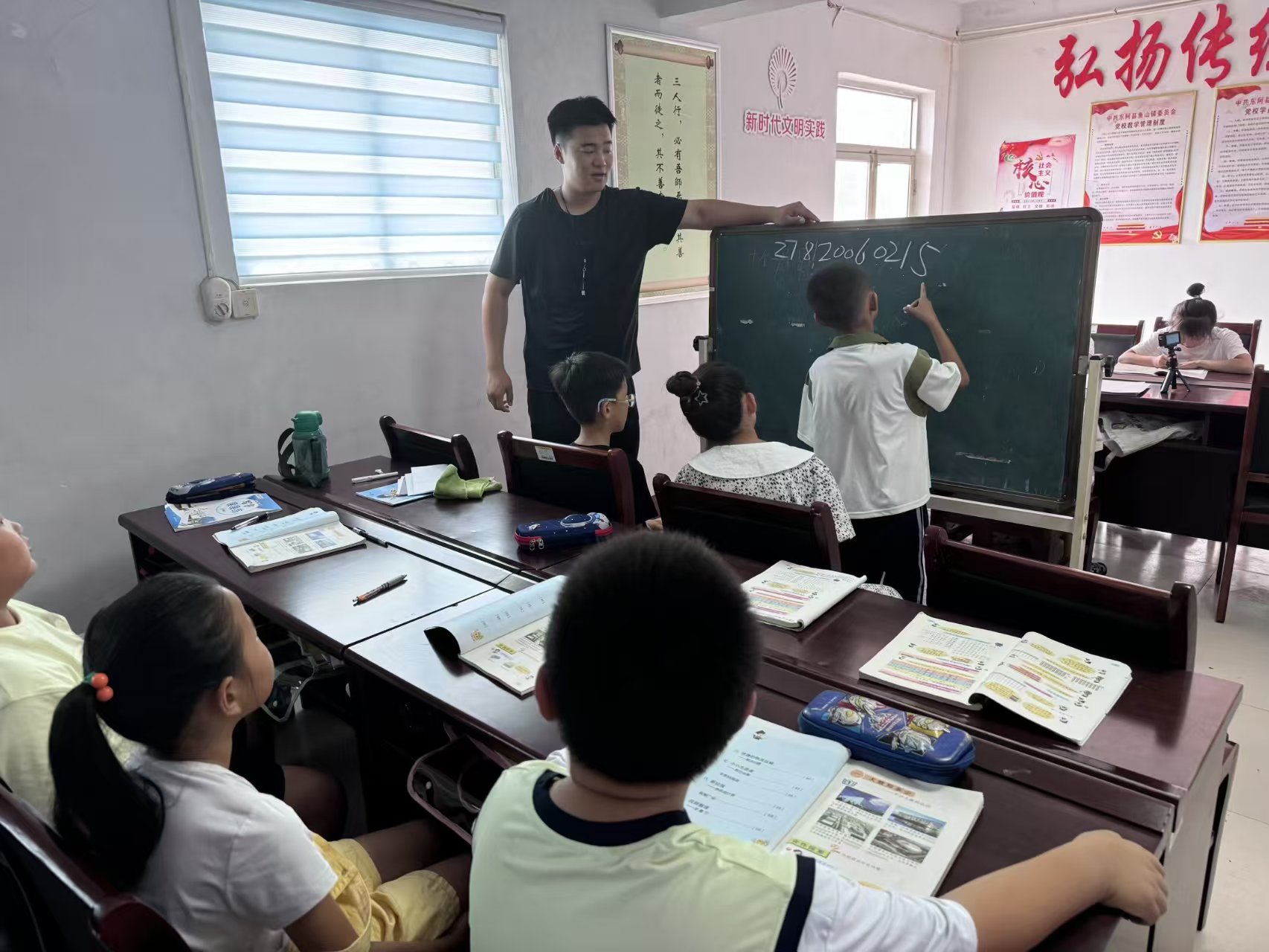 最令人欣喜的是,课上同学们积极踊跃地回答问题,那一双双高举的小手,那眼中闪烁的求知光芒,都是对知识最热烈的渴望。面对孩子们提出的每一个问题,支教队的成员们都耐心细致地解答,用鼓励的话语和温暖的笑容,给予他们信心和勇气。