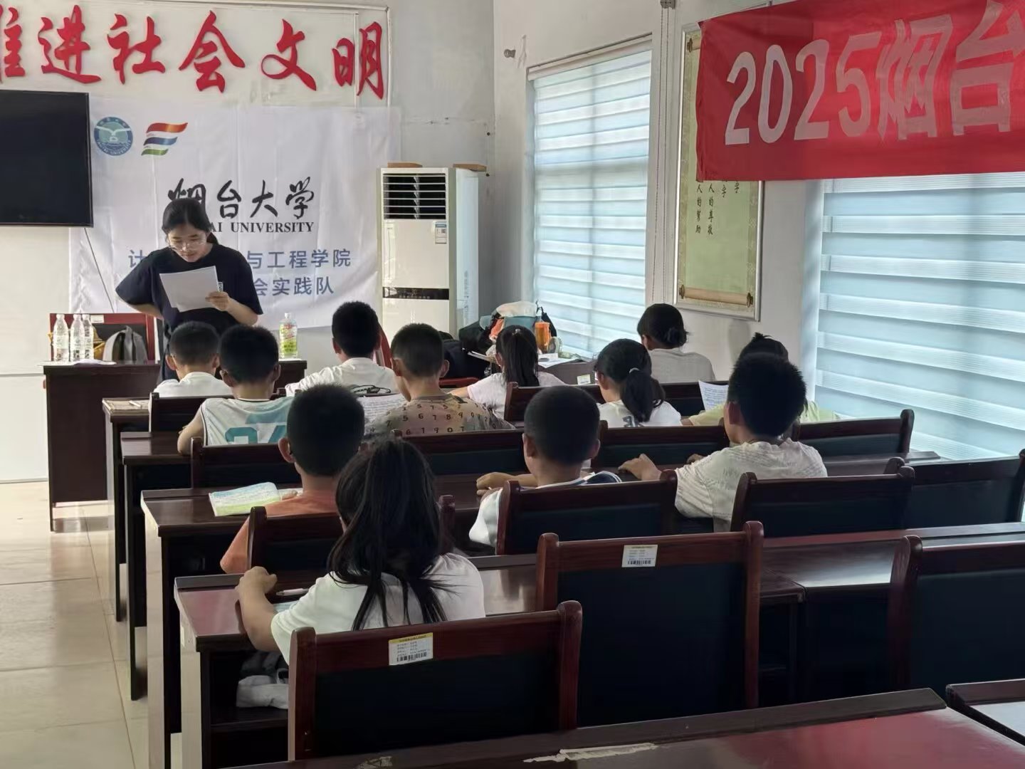 图为支教队成员向同学们讲授语文知识。 姚宜彤 供图
